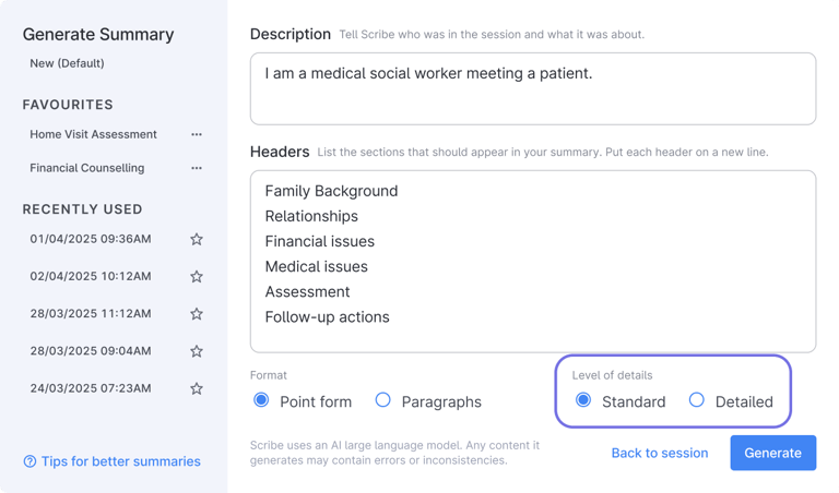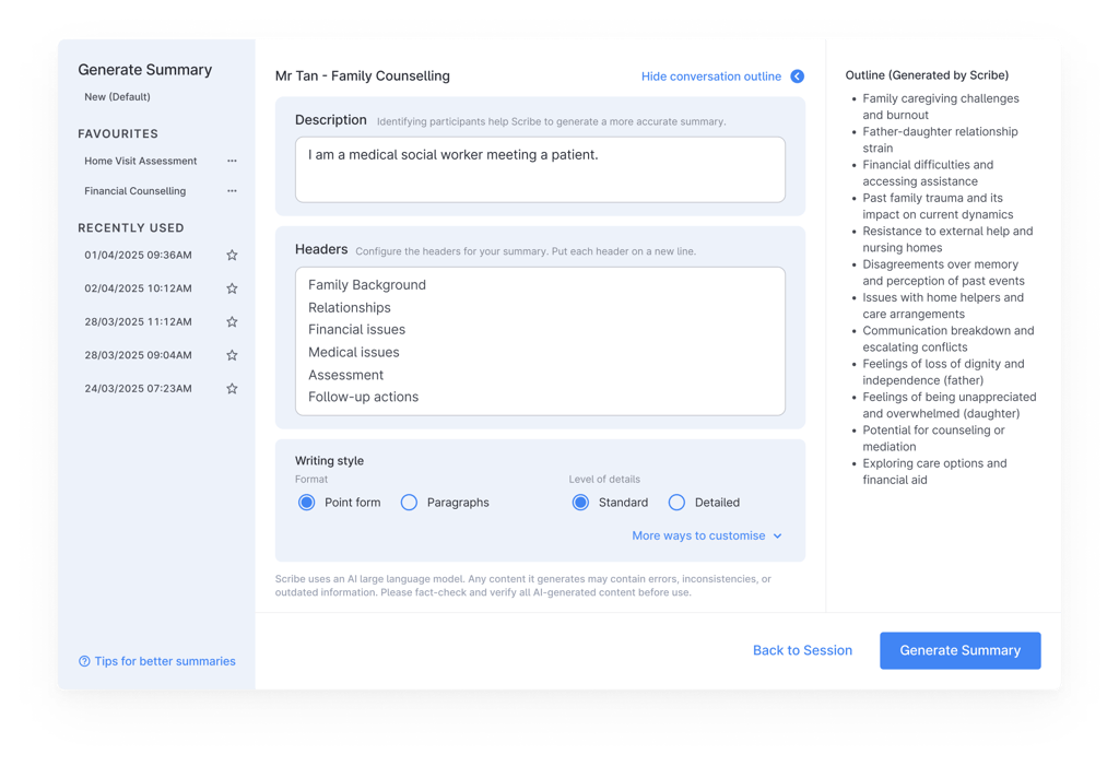 This highlighted users’ preference for richer summaries and showed that documentation in health and social care often requires more depth than what Scribe could initially provide.