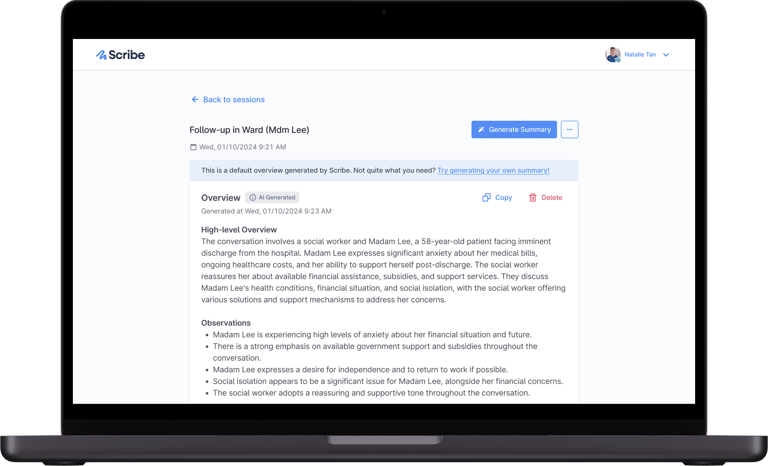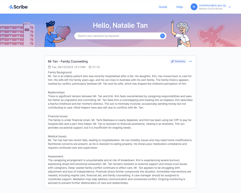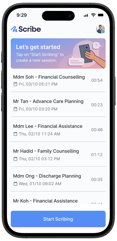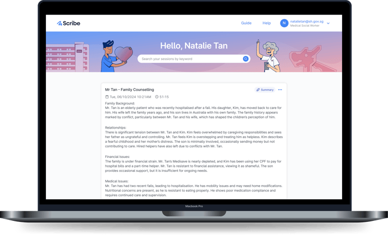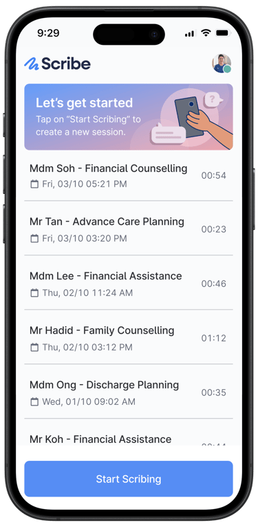Born out of Hack for Public Good in 2024, Scribe was built to ease the mental load of documentation, helping medical social workers stay fully present in emotionally demanding conversations while ensuring accurate records are captured for their casework.