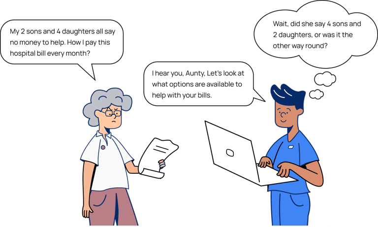 “Sometimes the summary just says the patient has siblings, but I need to record the family composition — eldest is daughter, second is son, and so on.”